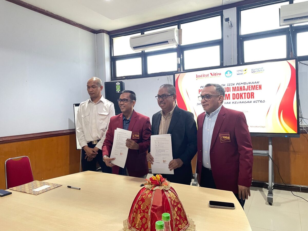 Institut Bisnis dan Keuangan Nitro resmi memperoleh Surat Keputusan (SK) izin pembukaan Program Studi Doktor Manajemen, hal ini menandai langkah penting dalam pengembangan akademik dan peningkatan kualitas pendidikan tinggi di Indonesia, khususnya di wilayah LLDIKTI Wilayah IX. Dengan terbitnya SK tersebut, maka Institut Bisnis dan Keuangan Nitro kini semakin memperluas pilihan pendidikan lanjut bagi para akademisi, profesional, serta praktisi di bidang manajemen.